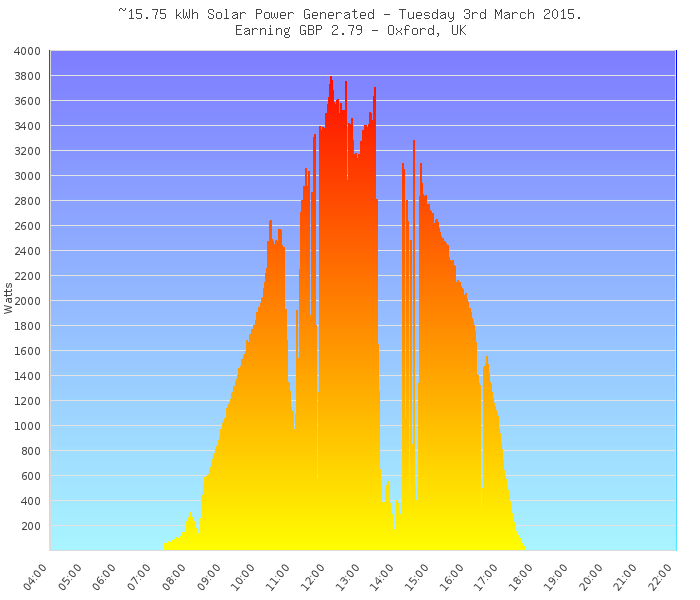 Although it's only one data point, I'd like to show you what happened to our solar panels during the eclipse.